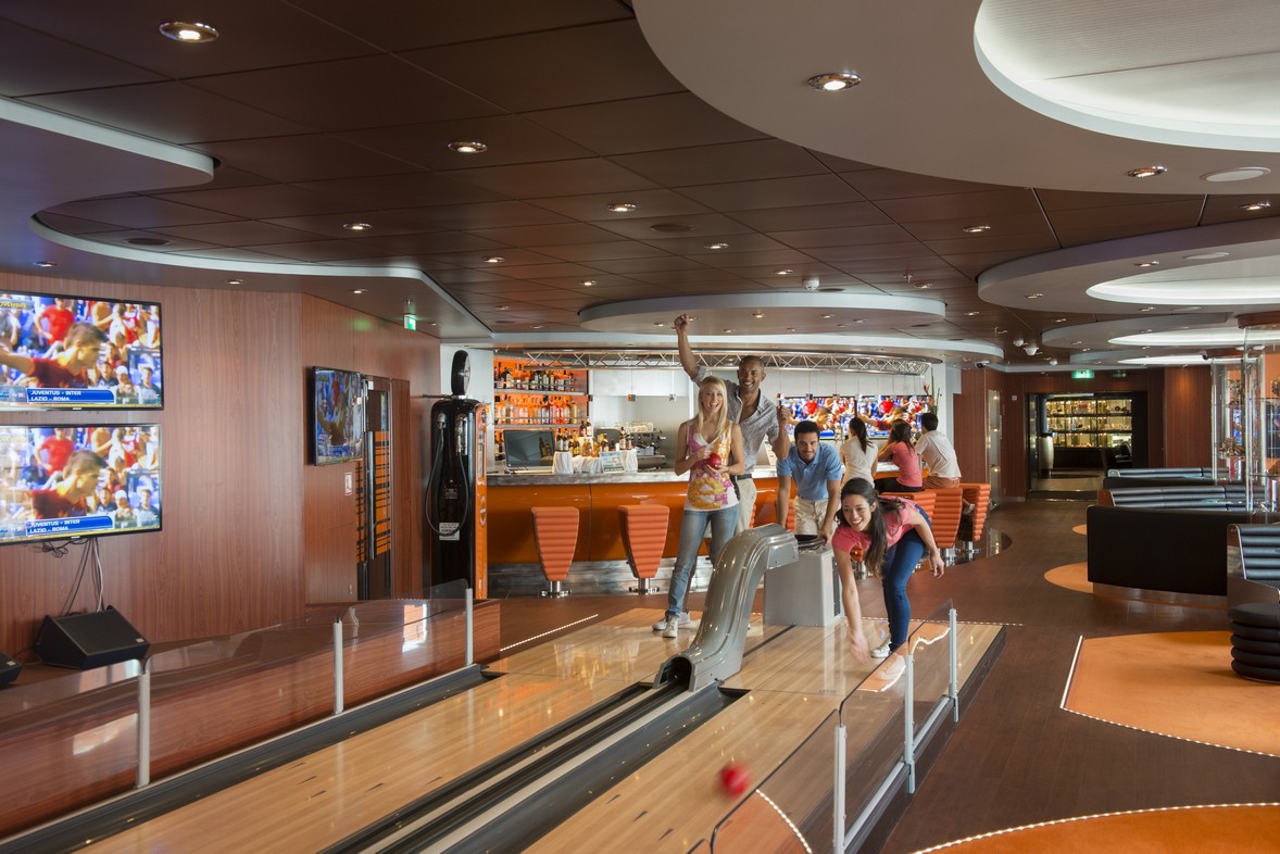 Op enkele kleinere zeil- of expeditieschepen na zijn alle nieuwe cruiseschepen tegenwoordig volledig voorzien op families met kinderen. Op de hoogste dekken vind je zwembaden - steeds vaker met grote glijbanen zodat het eerder waterpretparken zijn - kinderjacuzzi’s, een joggingparcours, volley- en basketbalterreinen, pingpongtafels, dartsborden enzovoort. Sommige schepen hebben bowlingbanen, andere minigolfterreinen of klimmuren, race- of surfsimulatoren, virtual reality-kamers, computergames, lasergames, ijsschaatspistes, touwenparcours, vrije val-simulatoren, Te veel om op te noemen. Bekijk dat op je gemak vooraleer je boekt.