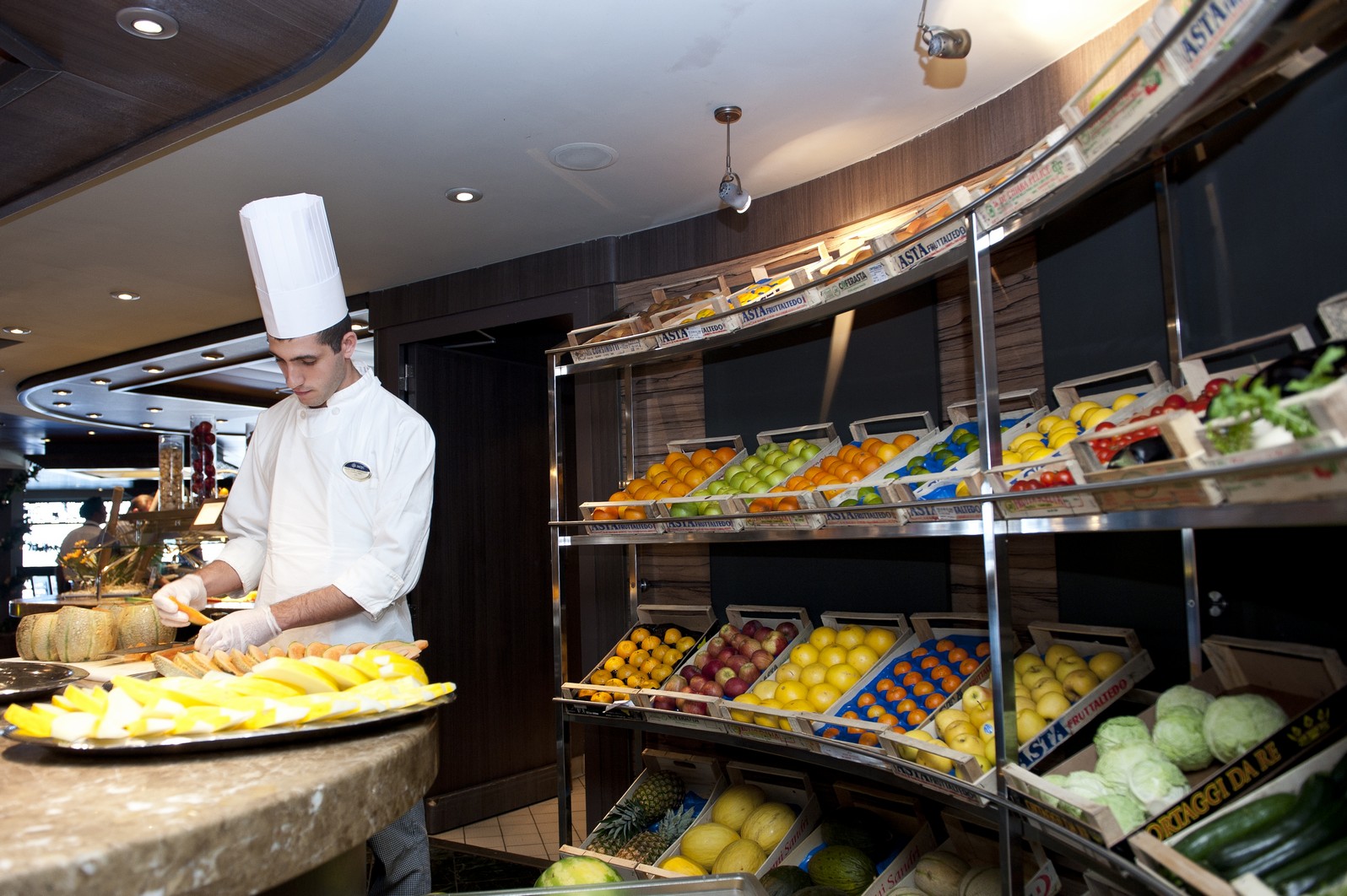 Bij de meestal zeer uitgebreide buffetten vind iedereen wel iets naar zijn smaak. Op een aantal schepen zijn er zelfs speciale kinderbuffetten die wat lager zijn en waar uiteraard pizza en frieten te krijgen zijn, maar waar ook steeds meer aandacht is voor gezondere voeding die zo geplaatst wordt dat kinderen al wat sneller fruit en groenten kiezen.